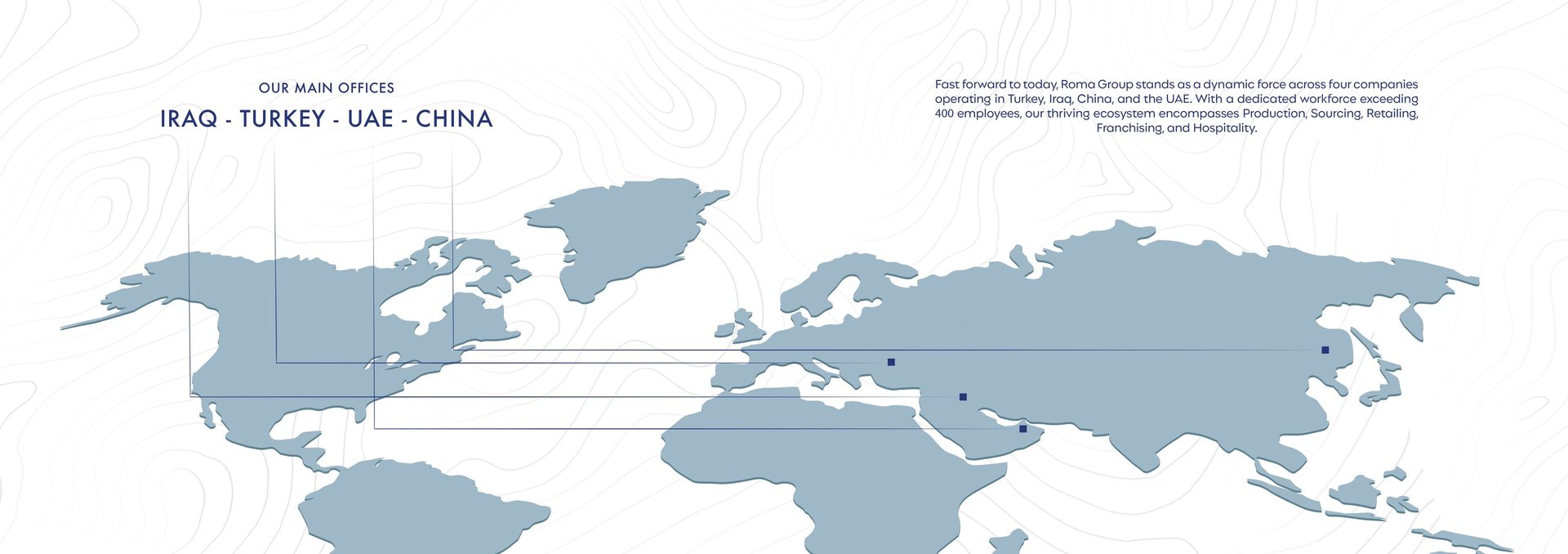 At Roma Group, we envision a future where our legacy of excellence and innovation continues to shape the landscape of fashion, retail, and hos- pitality. We strive to be a global leader, celebrated for our commitment to quality, customer satisfaction, and sustainable business practices.