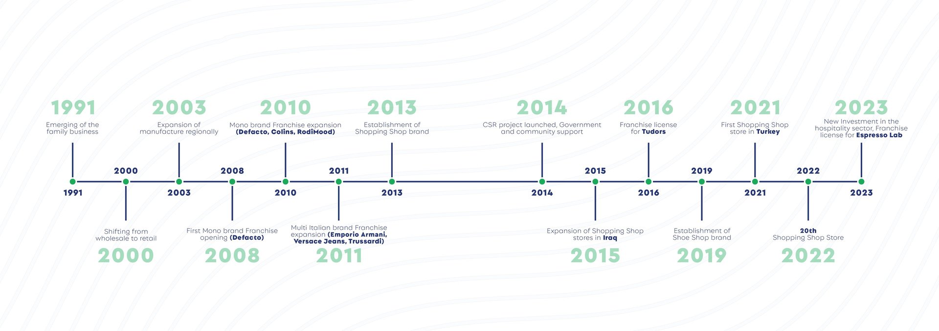 Bayt Al-Saffar Company, our 2013 establishment headquartered in Turkey & Iraq, spearheads production, strategic planning, and supply chain operations for renowned brands within the Shopping Shop and Shoe Shop sectors. Roma General Trading, operating as Romatex since 2005, oversees franchise operations within the group, managing the retail activities of the Shoe.